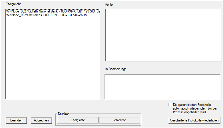 - Fenster Sammelauftrag für WaveNetknoten schließt sich.