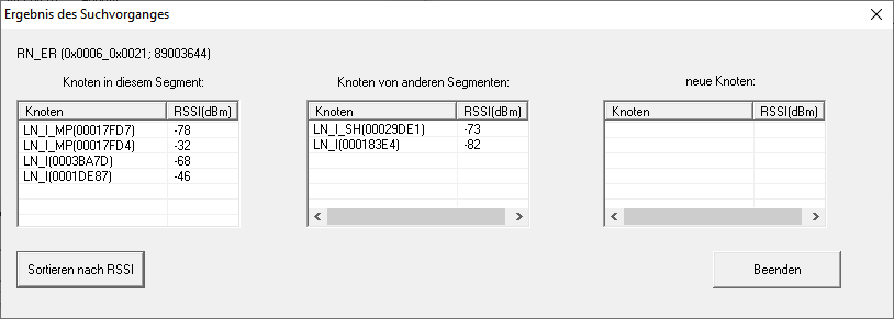 Name des LockNodes | Signalstärke der Verbindung des LockNodes zum suchenden RouterNode |