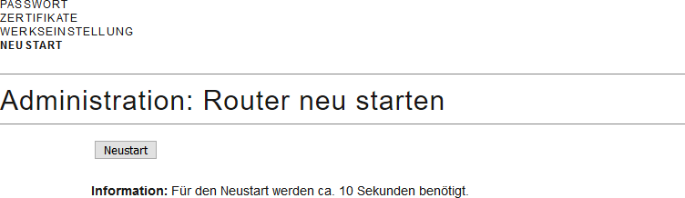 Ethernet-RouterNodes über die Browserschnittstelle neustarten