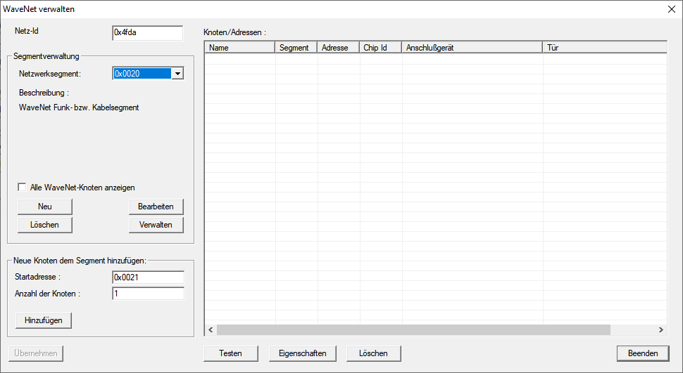den für das WaveNet verwendeten Kommunikationsknoten aus. - Sie sehen in der Übersicht die nicht gelöschten Einträge Ihrer RouterNodes.