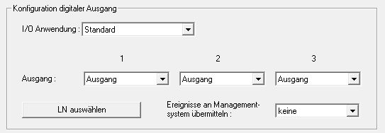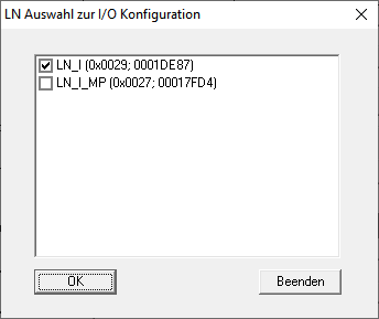 Sie können mit der Schaltfläche LN auswählen das Fenster LN Auswahl zur I/O-Konfiguration öffnen. Wählen Sie hier die LockNodes in Schließungen aus. Berechtigte Zutritte bzw. unberechtigte Zutrittsversuche an diesen Schließungen (LockNodes) werden an die LSM weitergeleitet.