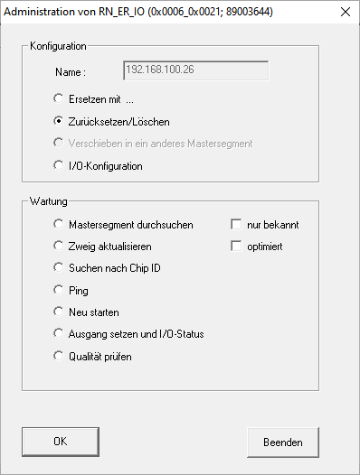 LockNodes, die dem RouterNode zugewiesen sind, sind nach dem Zurücksetzen des RouterNodes nicht mehr erreichbar. Deshalb ist die Option Zurücksetzen/Löschen gesperrt, wenn noch LockNodes dem RouterNode zugewiesen sind.