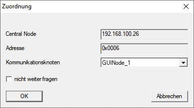 - Dans le menu déroulant , sélectionnez le nœud de communication que vous voulez utiliser pour le RouterNode dans le LSM (pour les paramètres, voir Trouver et ajouter des appareils ou le manuel du LSM).