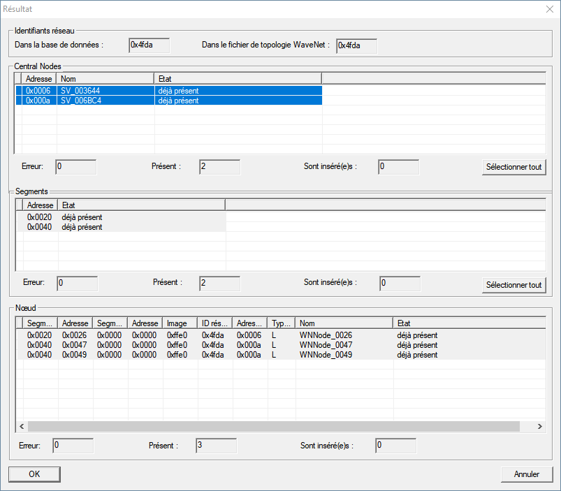 - La fenêtre Importer la topologie WaveNet s’ouvre. Une liste des appareils à importer s’affiche.