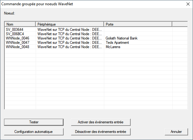 - La fenêtre Commande groupée pour noeuds WaveNet s’ouvre.
