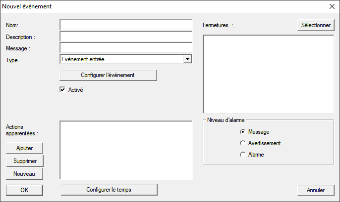 - La fenêtre Evénement entrée s’ouvre.