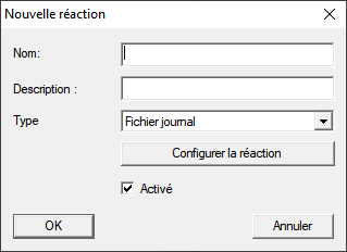- La fenêtre Nouvelle réaction s’ouvre.
