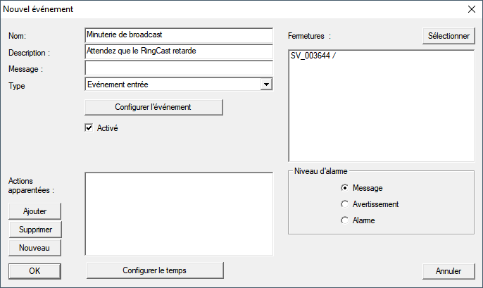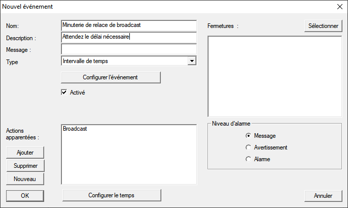 - La fenêtre Evénmt. à interv. de temps se ferme.