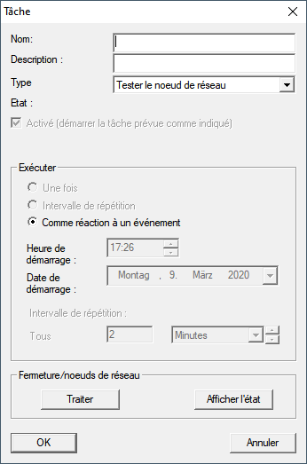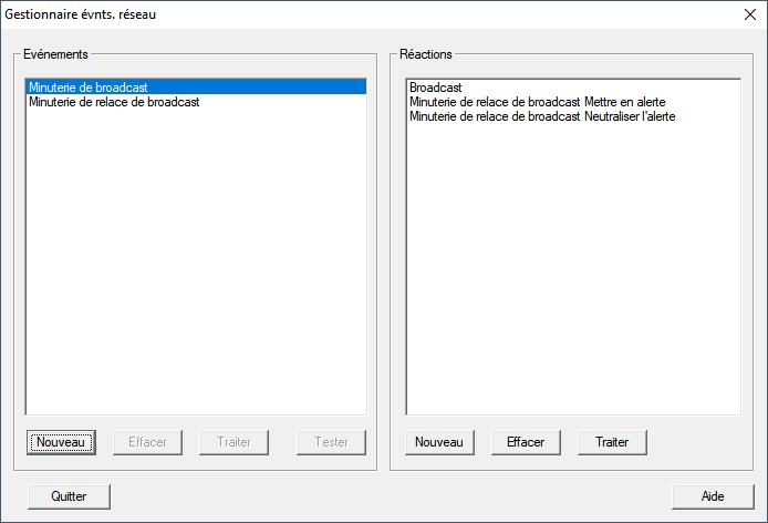 - La fenêtre Gestionnaire évnts. réseau s’ouvre.