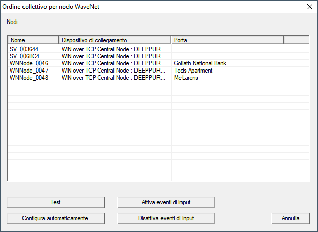 - La finestra Ordine collettivo per nodo WaveNet si chiude.