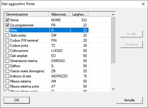 - La finestra Dati aggiuntivi: Porta si chiude.