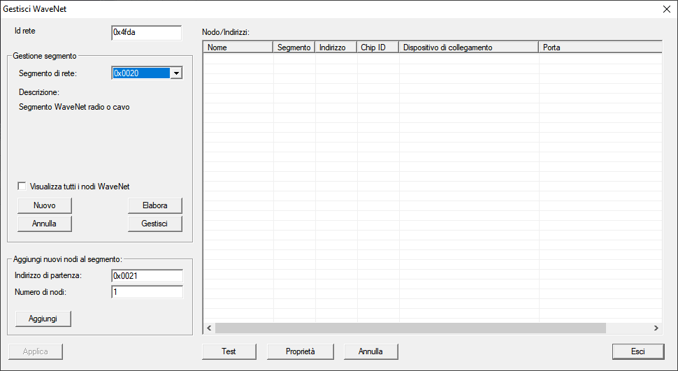 il nodo di comunicazione utilizzato per WaveNet. - Nella panoramica si possono vedere le voci dei RouterNode che non sono state cancellate.