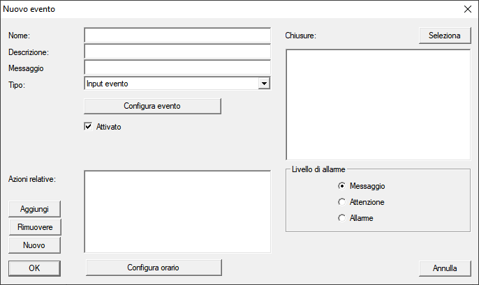 - La finestra Input evento si apre.