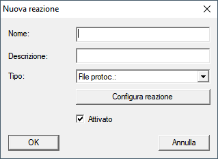 - La finestra Nuova reazione si apre.