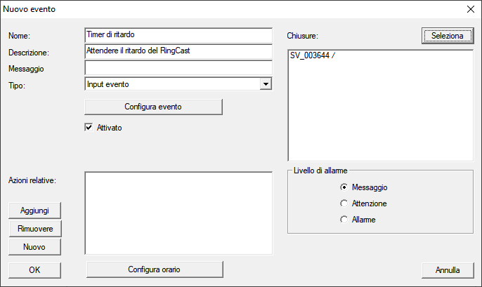 - Fare clic sul tasto Configura evento.