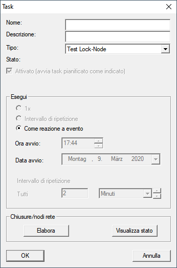 - Scegliere nel menu a discesa la voce Task rete.