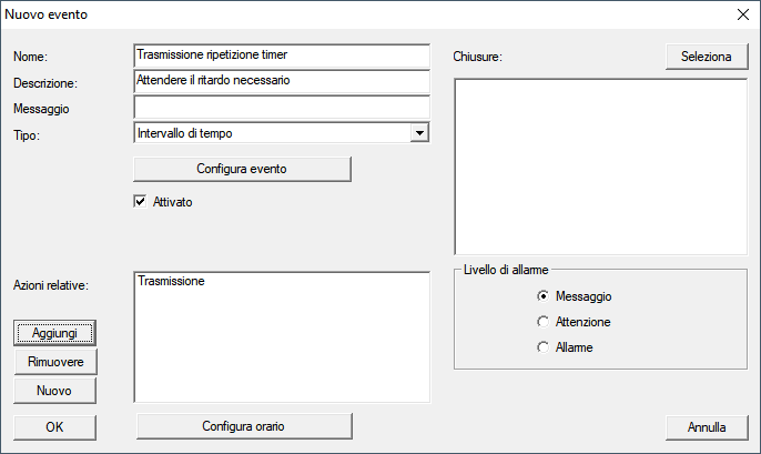 - La finestra Evento intervallo di tempo si chiude.