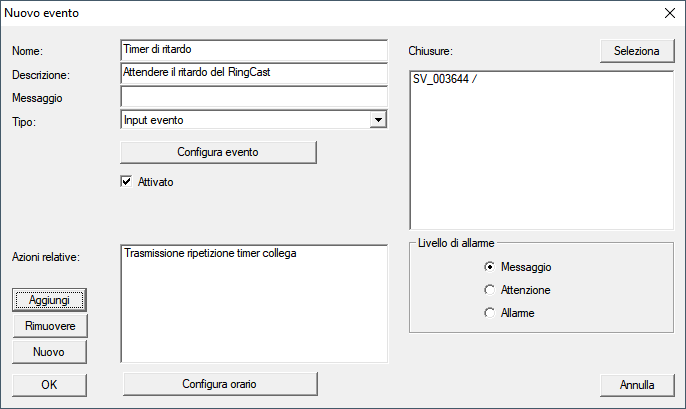 - La reazione invia il comando del RingCast a tutte le chiusure specificate.