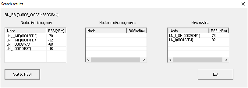 U ziet een tabel met een overzicht van de LockNodes die de RouterNode tijdens de zoekopdracht heeft gevonden. Deze tabel bevat drie kolommen: