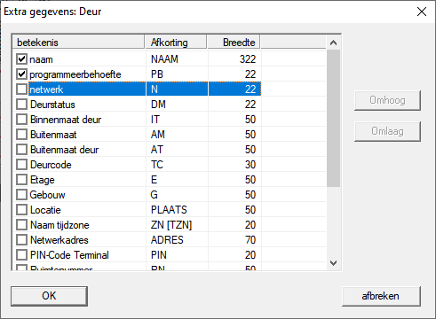 - Het venster Extra gegevens: Deur gaat open.