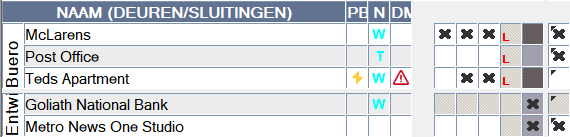 - Batterijalarmen van de sluitelementen met LockNodes via de waarschuwingsmonitor (Berichten - ), zie LockNodes. Voor een zinvol gebruik moet een taak voor het testen van de batterijstatus geconfigureerd zijn met de Task Manager. Deze functie is alleen beschikbaar in LSM Business/Professional.