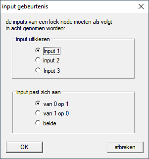 - Bij de centrale Output-Router is minstens één digitale uitgang op Input receipt short of Input receipt static ingesteld (zie RouterNode: digitale uitgang).
