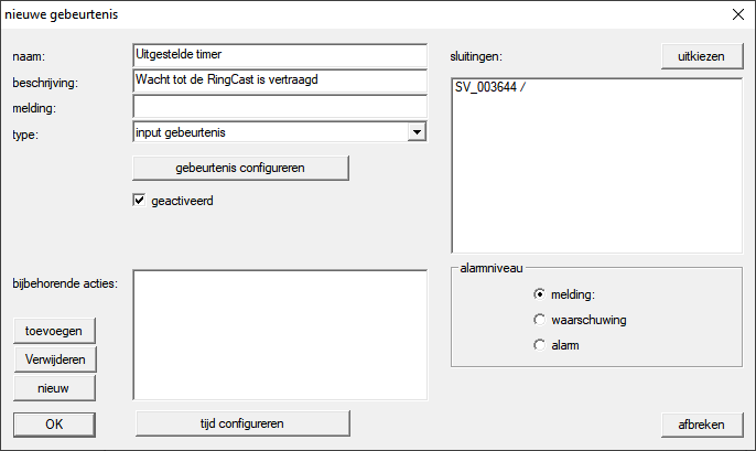 - De actie wordt aangegeven in het overzicht van de acties die bij de gebeurtenis horen.