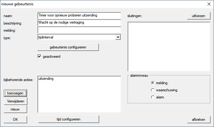 - Het venster tijdinterval-gebeurtenis gaat open.