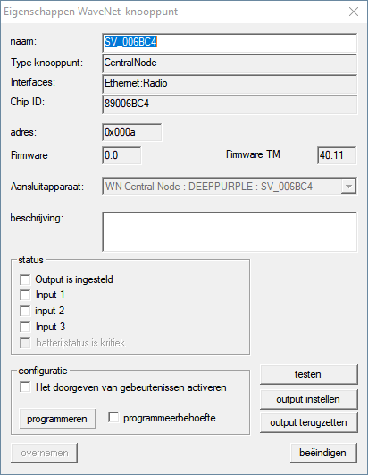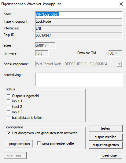 - Het venster Eigenschappen WaveNet-knooppunt gaat open.