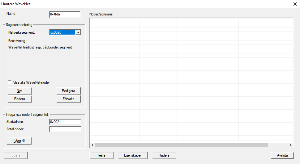 den kommunikationsnod som används för WaveNet. - I översikten visas de RouterNodes-poster som inte har tagits bort.