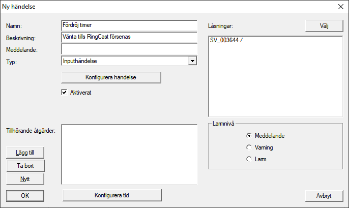- Åtgärden visas i listan med åtgärder som hör till händelsen.