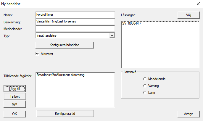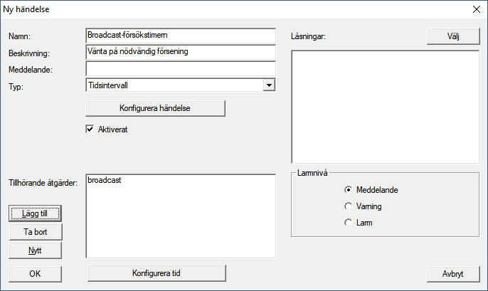 - Ge händelsen ett namn, t.ex. ”Backup avbrott”.